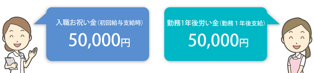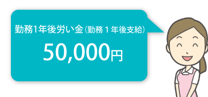 また、覚えることが⼤変な初年度(1年間)の期間を経た⽅にも、労いの意味を込めて、お祝い⾦を贈呈したいと思います。ご活⽤ください。