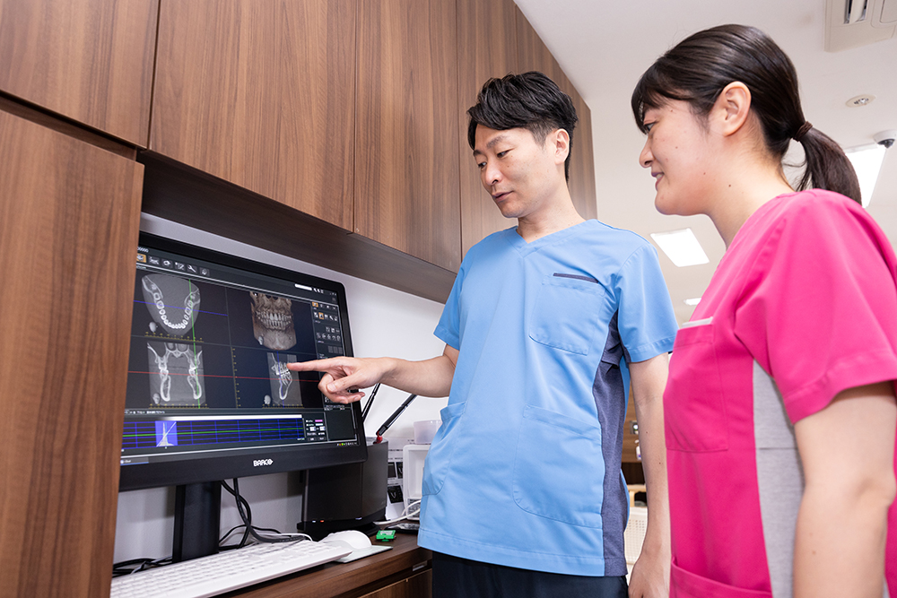 新しく来院された患者さんに対しては必ず症例検討を行っています。患者さんの個々の口腔内の状況を診て、「なぜ、この口腔内の状態になったのか」「どんな治療が必要なのか」など、しっかりと歯科治療に対する理解を深めてもらい、歯科治療にどんどん興味を持ってくれたら嬉しいです。