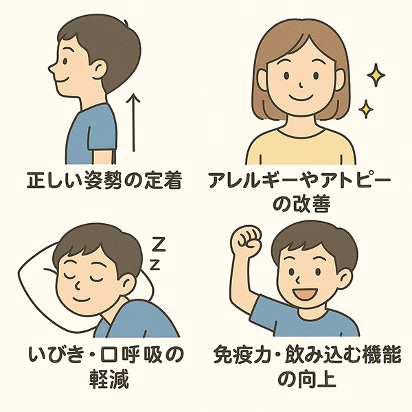 これらは、あごの成長を妨げ、歯並びの乱れや顔つきの変化を引き起こす原因になります。